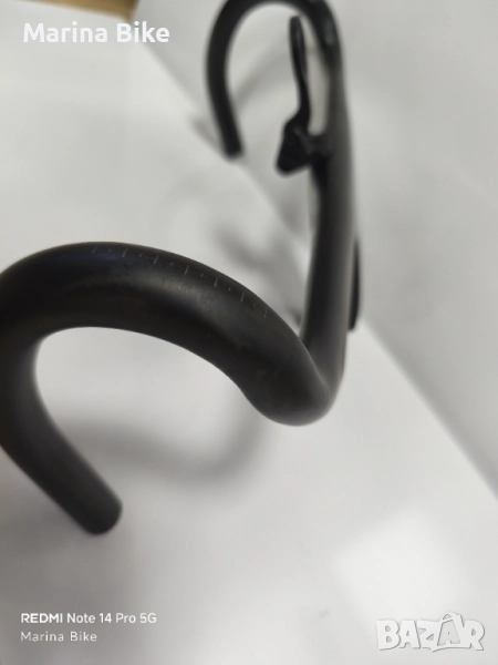 Употребяван оригинален карбонов кормилен модул Bontrager Aeolus RSL VR-C, свален от Trek Emonda 2023, в отлично състояние. Кормилото е без пренавити болтове на лапата или дълбоки следи от командите, с козметично одраскване около болтовете на лапата, без увреждане на карбона. Изработено от OCLV Carbon, с VR-C дизайн за по-дълбока извивка, с измерено тегло 330 грама.