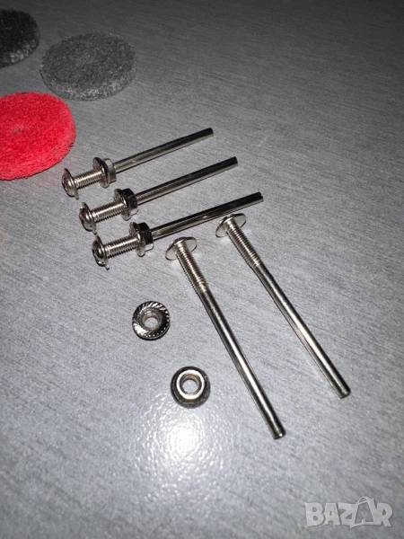 Държачите за тях 5 на брой в комплекта са с долно пристягане на диска с гайка. По този начин се избягва развиване и излитане на диска.