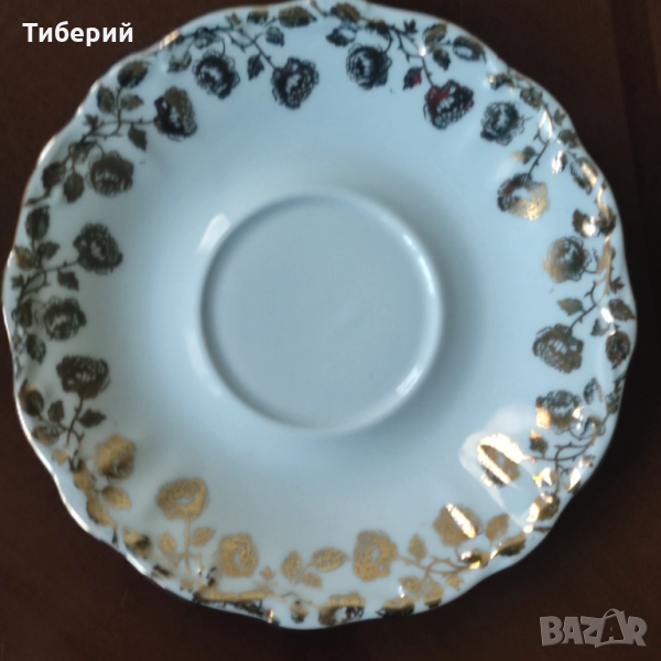 Винтидж сервиз от фин костен прозрачен порцелан с бароков елемент "Bareuther Waldsassen Bavaria"-Германия. Със златен флорален кант на рози, произведен -1940 -1950 година, маркиран.