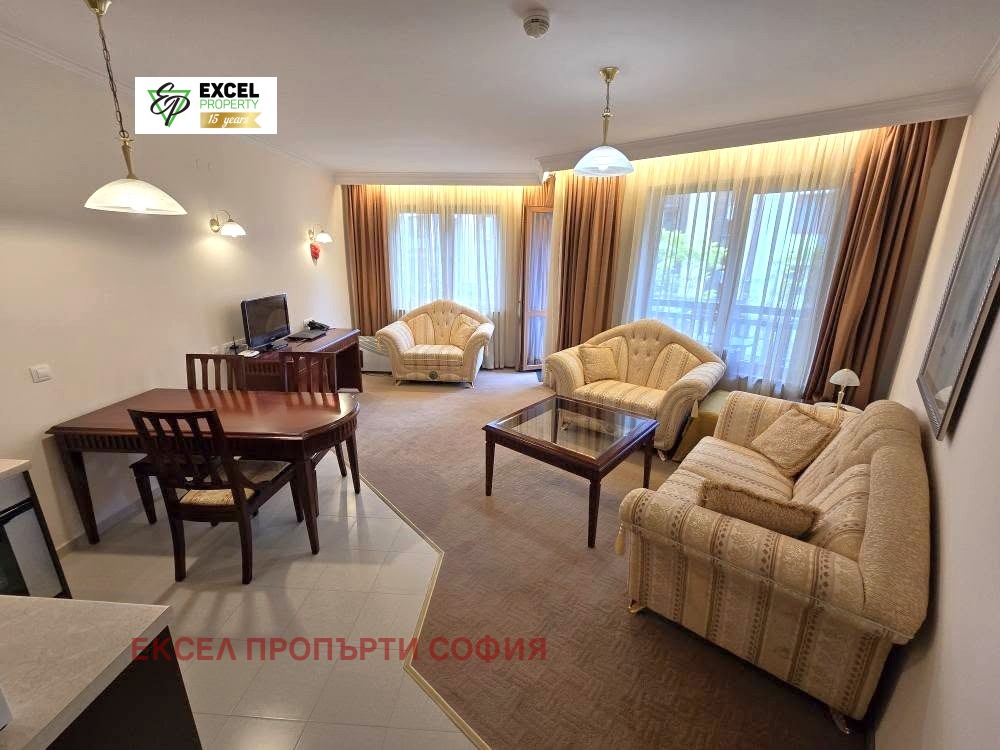 Bansko Estates Ви представя за продажба нов, просторен двустаен апартамент с площ от 81 кв.м. Жилището се предлага напълно обзаведено и оборудванo. Разположен на 3ти етаж, с изложение юг, имотът открива пред Вас прекрасна гледка към заснежените върхове на Пирин планина.