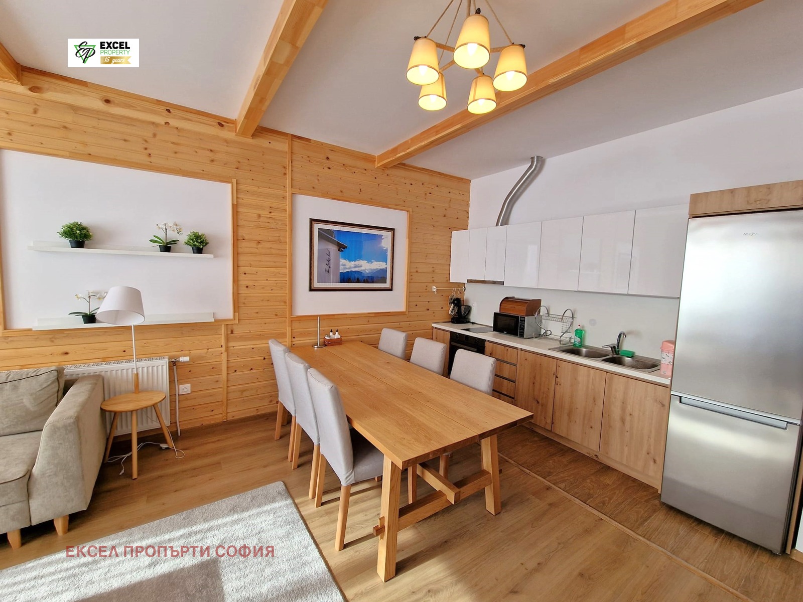 Имотът е изграден с най-високи стандарти на строителство, като съчетава функционалност и изискан дизайн в алпийски стил. Светлината и пространството се преплитат във всяка стая, създавайки уютна и приятна обстановка. Прекрасно обзаведената кухня и обширната всекидневна предоставят идеалното пространство за семейни моменти и гости.