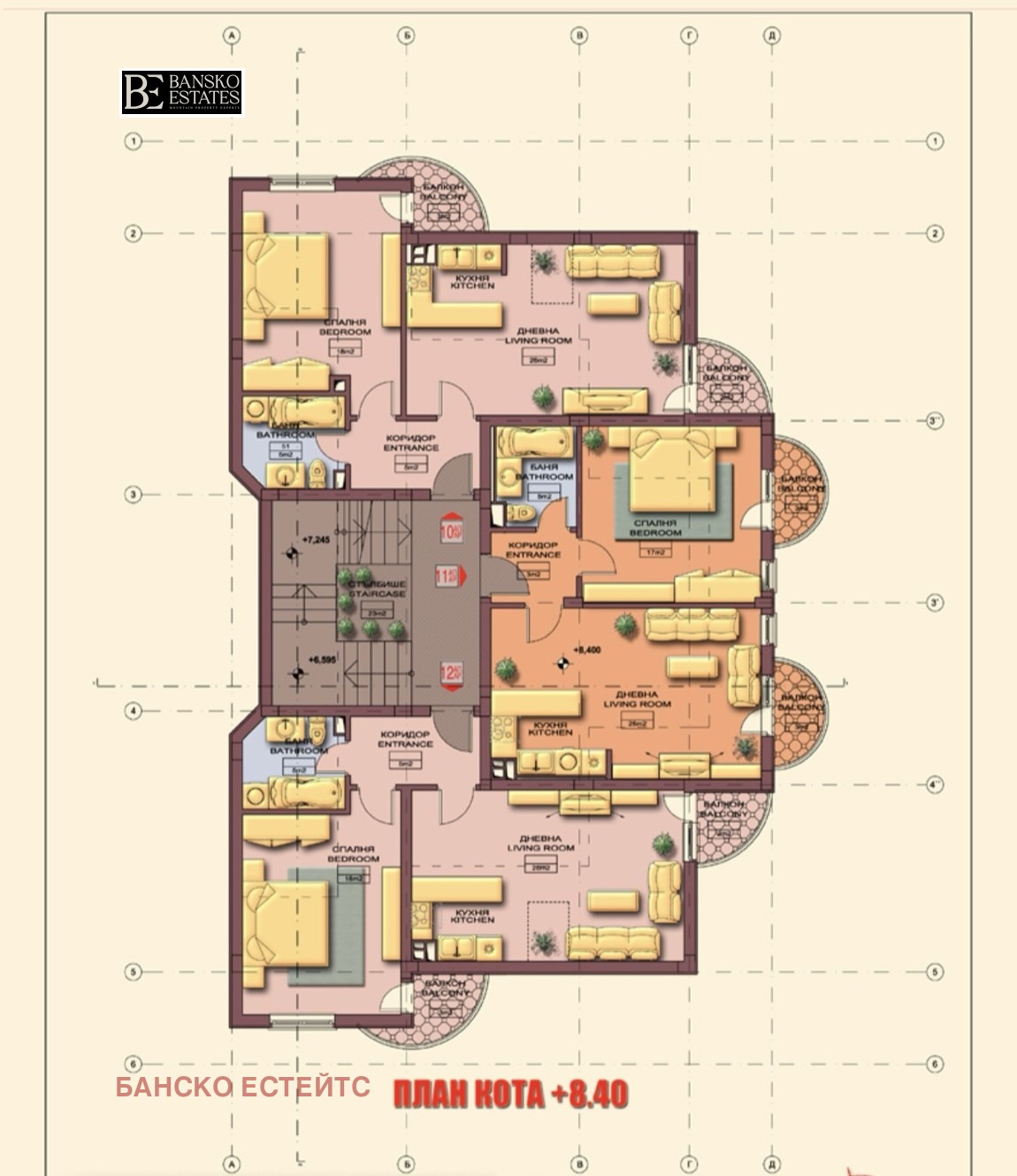 13 двустайни апартамента, всеки с южно изложение и уникална гледка към върховете на Пирин;