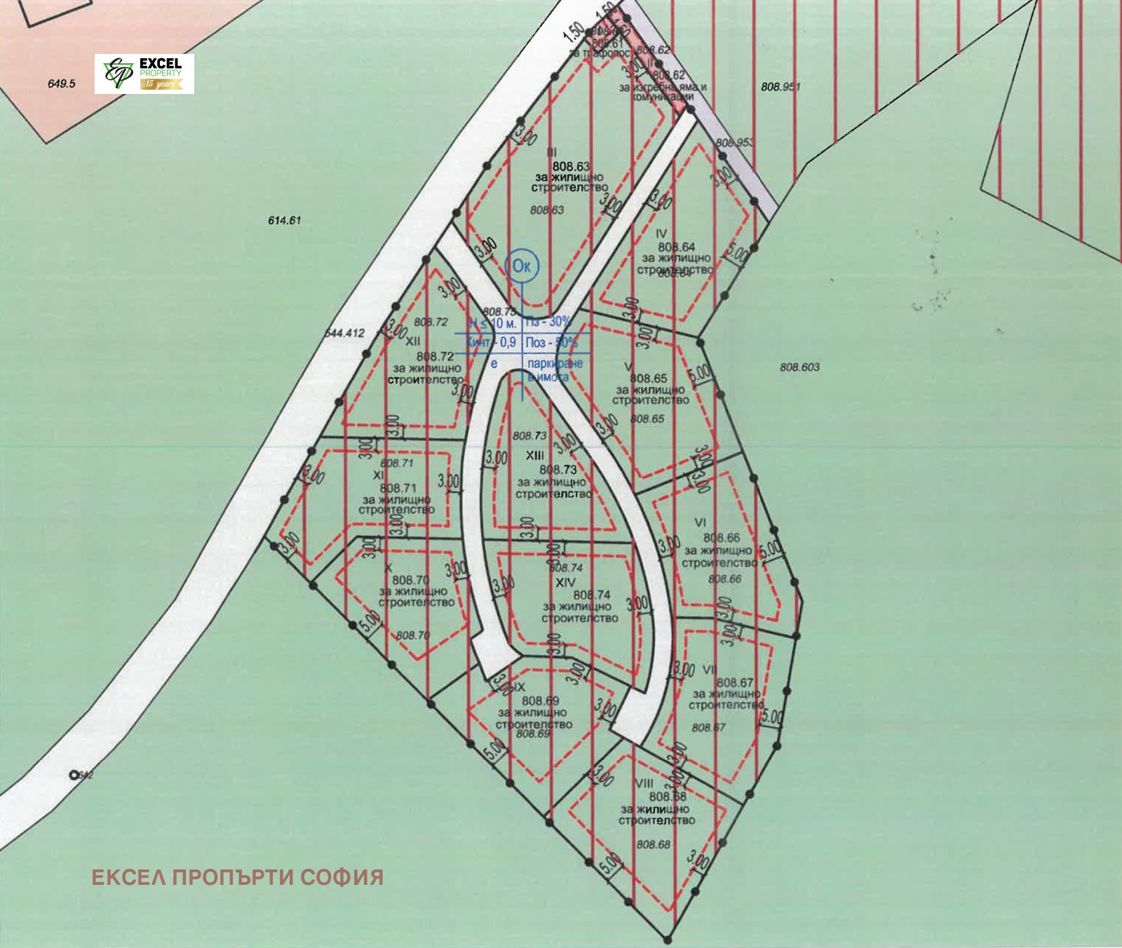 Проектът се развива върху терен с обща площ от 14 288 кв.м и предвижда изграждането на 12 еднофамилни къщи. Предлагаме за продажба отделни парцели с прилежащ проект за къща, като три от имотите вече са продадени. Всеки парцел е част от урегулиран поземлен имот (УПИ) и разполага с одобрен план за регулация и застрояване.