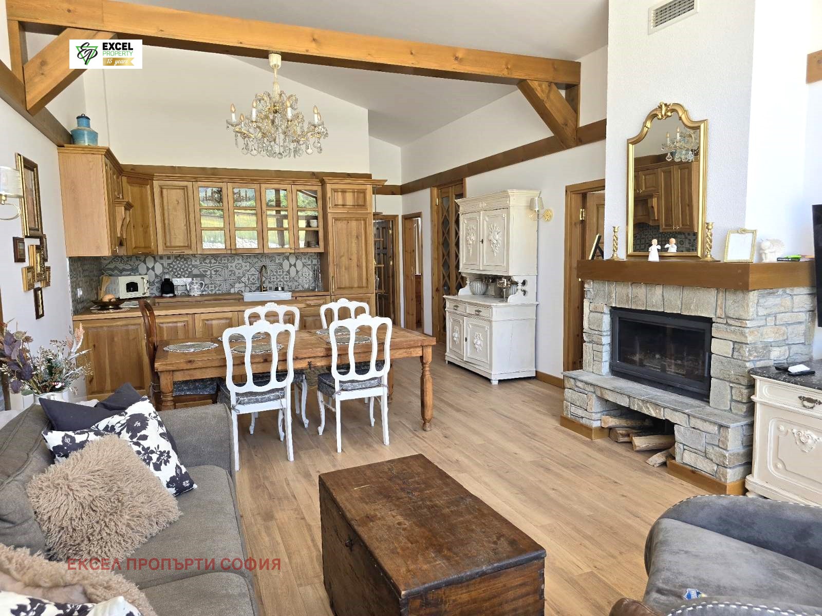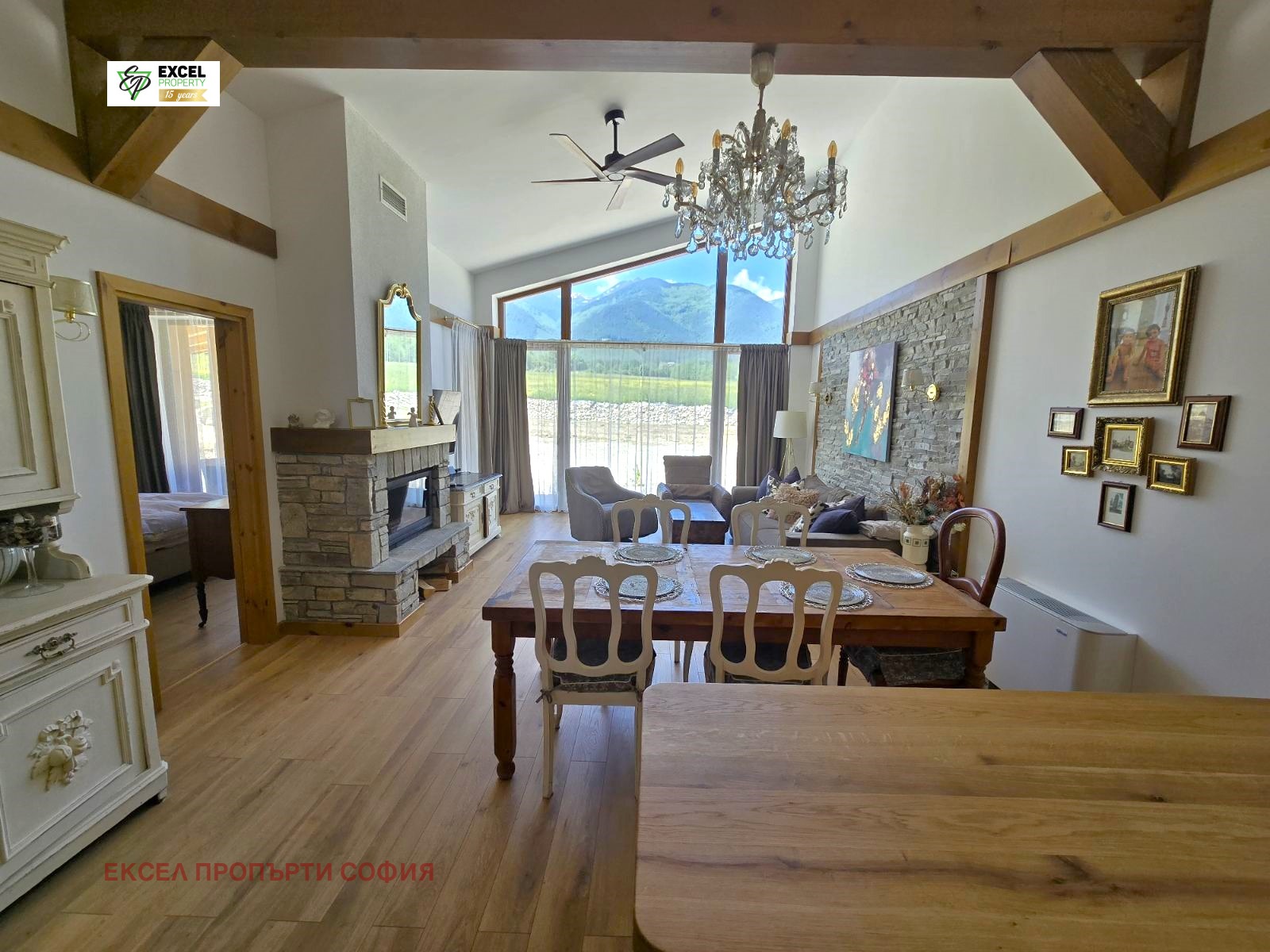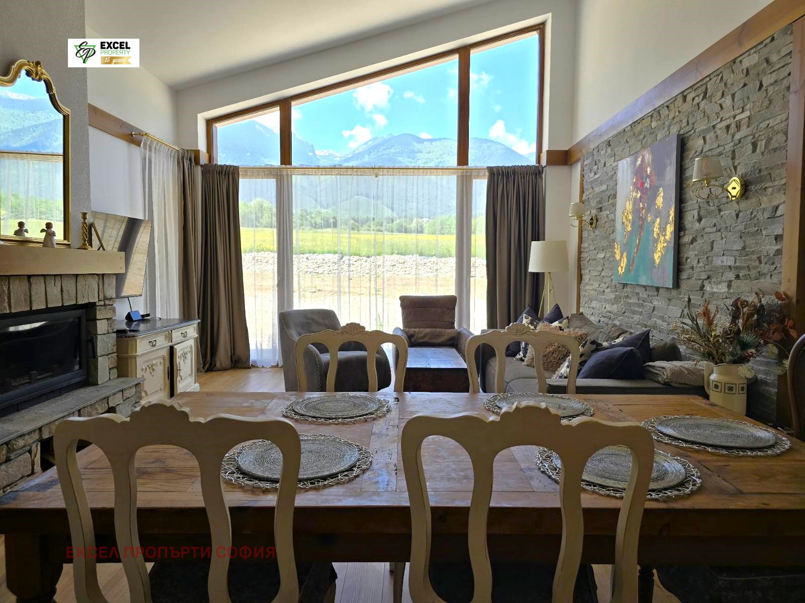 Ексел Пропърти има удоволствието да Ви предложи новото си впечатляващо попадение, а именно еднофамилна къща в алпийски стил с три спални и голям двор за продажба. Имотът се намира в непосредствена близост до Пирин голф.