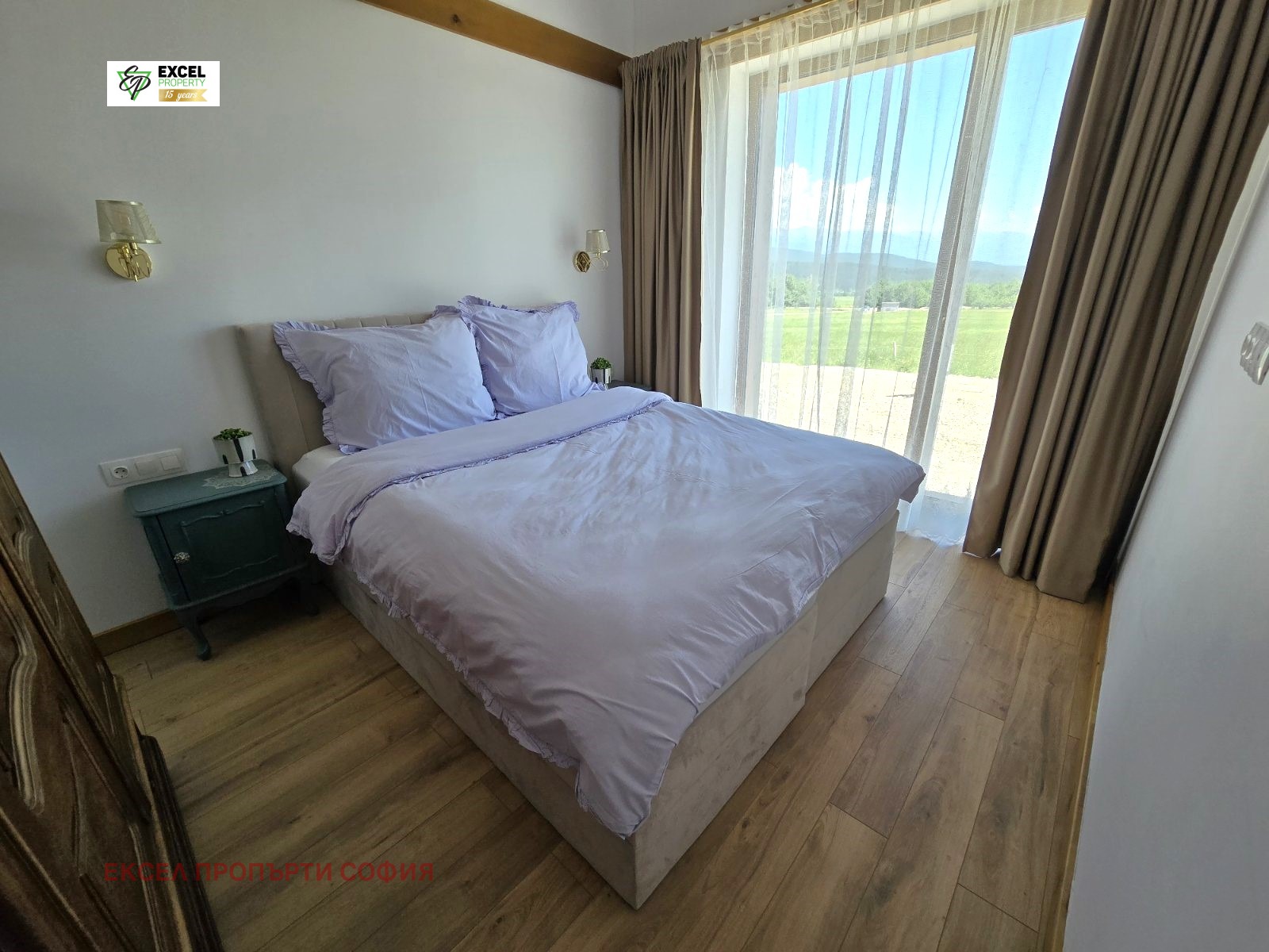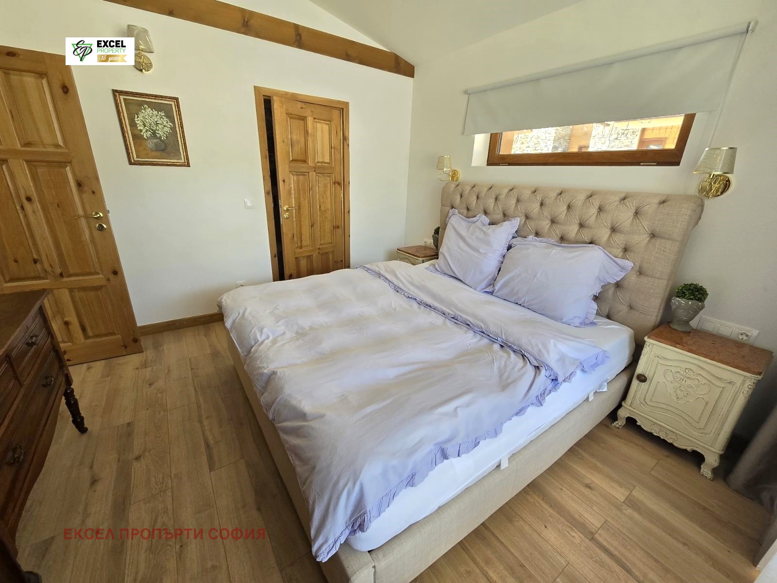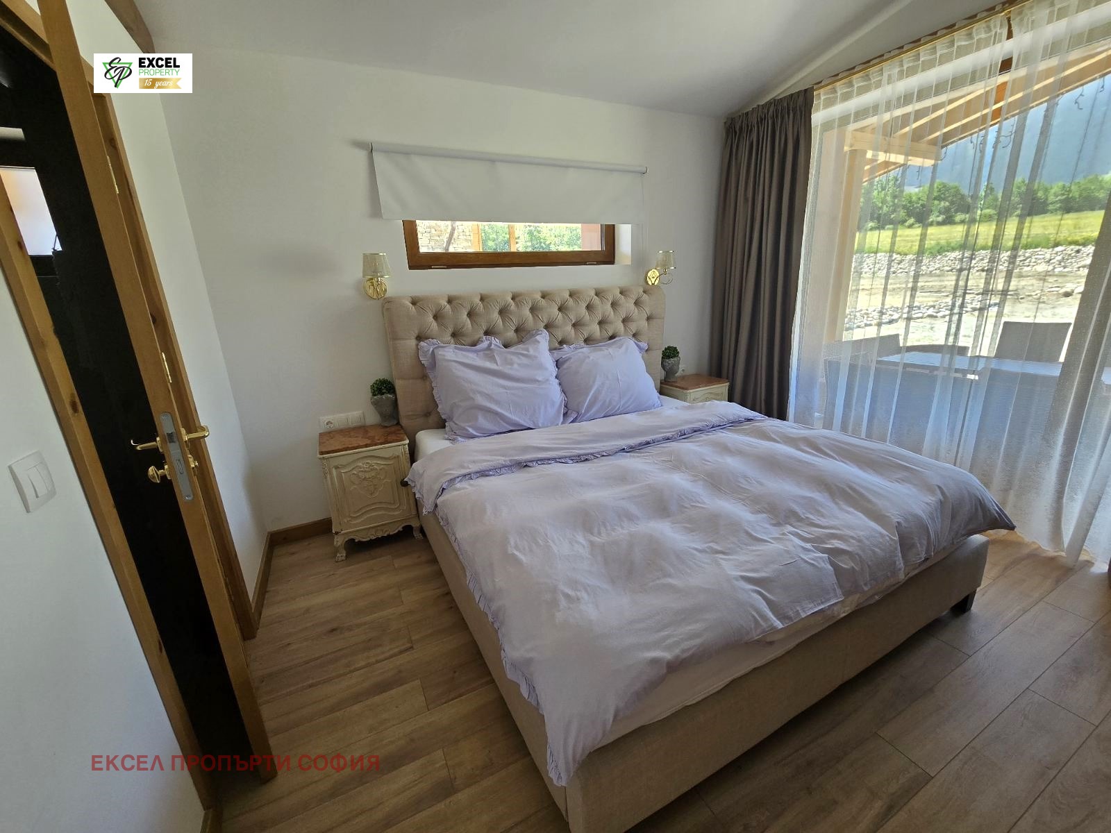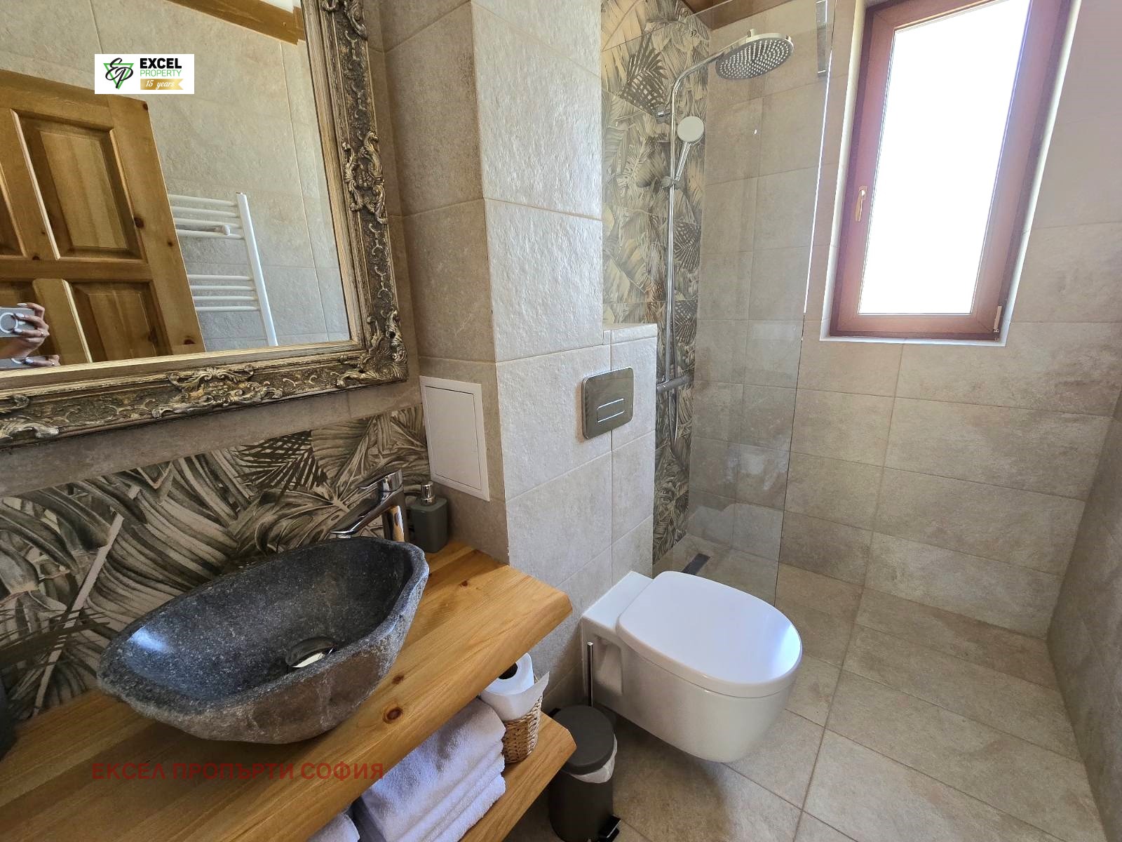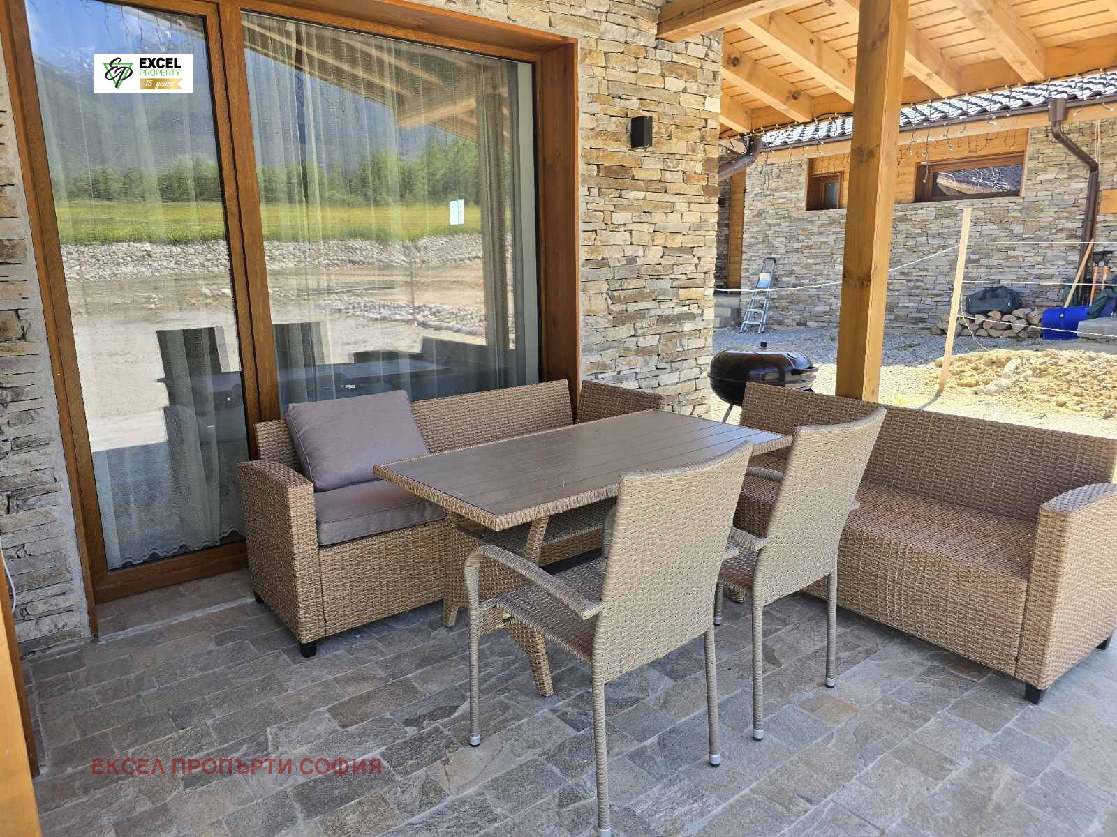 Разпределение на помещенията: входно антре, мокро помещение, просторна всекидневна с камина, трапезария и кухненска зона, три спални, едната от които мастър бедрум със собствена баня и тоалетна, втора баня с тоалетна, веранда с барбекю и голям двор (609 кв.м). От верандата и всекидневната на къщата се открива прекрасна панорамна гледка към Пирин планина.