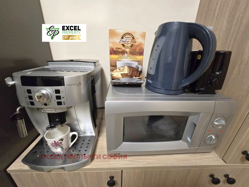 Жилището е обзаведено и оборудвано с нови мебели и електрически уреди (климатик, миялна машина, пералня, сушилня, фурна, кафемашина).