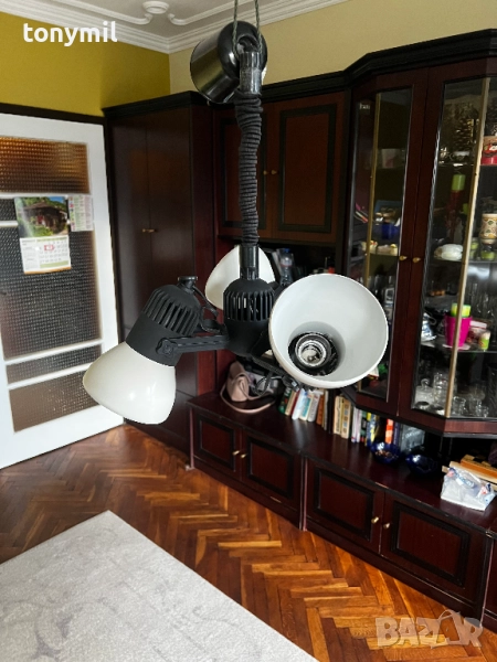 Практично и оригинално осветително тяло, в много добро състояние,регулиране на височината /асансьорен механизъм/, възможност всяко отделно тяло да се върти в различни посоки. За лампи до 60W E27,
