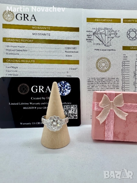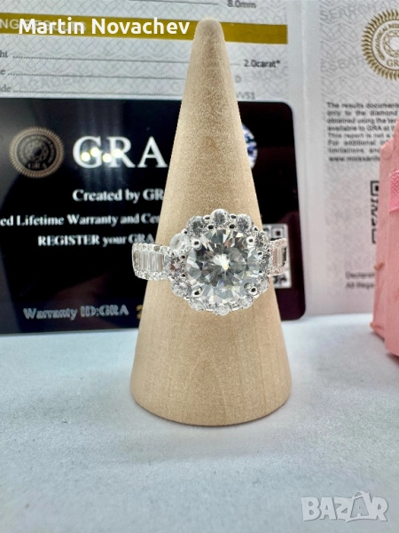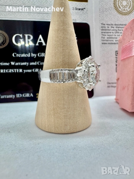 Сребърен пръстен с мойсанит (Диамант) 2 карата → Обява 52252905