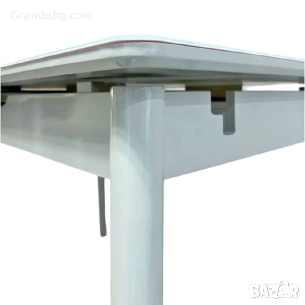 Плотът на "Лорета" е изработен от висококачествено закалено стъкло с изискан мраморен ефект. Този дизайн носи усещане за лукс и съвременна изтънченост, като същевременно осигурява здравина и лесна поддръжка. Закаленото стъкло е устойчиво на надраскване, термични промени и ежедневна употреба – перфектно за модерния дом.