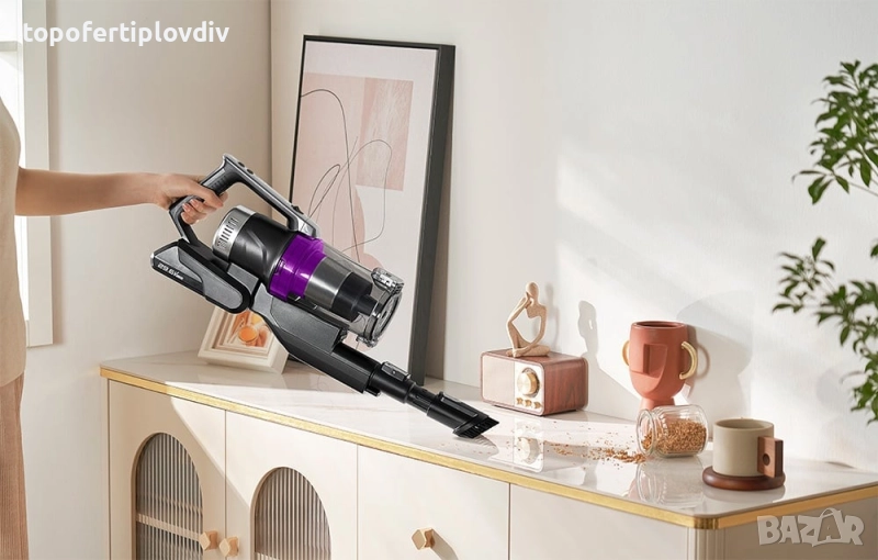 Уредът може бързо да се трансформира в ръчна прахосмукачка, което го прави идеален за почистване на зони над пода. Предлага се с накрайник за цепнатини и четка за тапицерия, които ще ви бъдат полезни при почистване на дивани, завеси или интериора на колата ви. Всички аксесоари могат удобно да се съхраняват на докинг станцията, така че винаги да са под ръка.