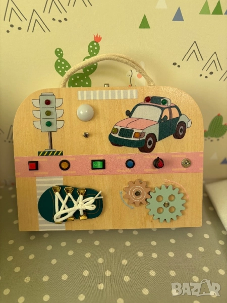 📌Развитие на фината моторика: Заниманията на тази дъска помагат на децата да практикуват малките мускули на ръцете и координацията на пръстите , важни умения за по-късното развитие на уменията за писане и работа с предмети.