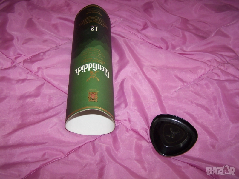 1. Оригинална празна картонена кутия с метален капак и дъно от Glenfiddich single malt scotch whisky- 12-годишно шотландско уиски. На капака има емблемата на бранда.