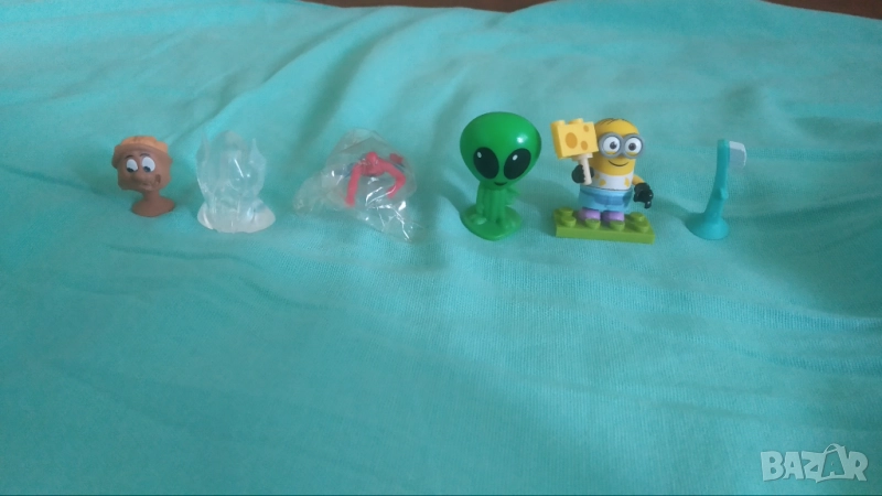 7. Шест различни фигурки (4 от шоколадово яйце: спайдърмен- нова, в опаковката си е, емотикон и други; 2 стиклетчета)