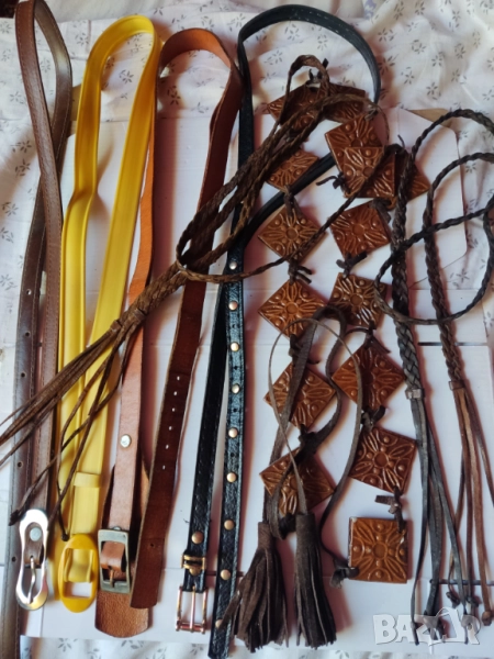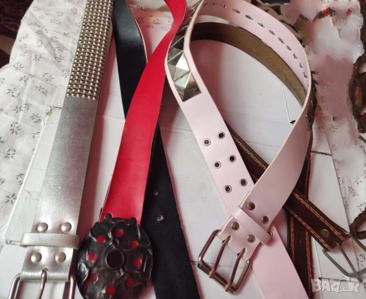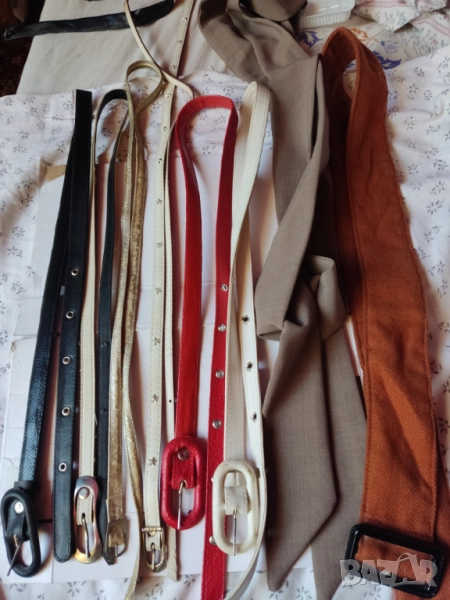 Продавам най-различни колани, включително и от естествена кожа. На първа снимка има два колана, които са с две лица (червено и бяло, и екрю и бяло). Цената от 3 лв. е, ако се купят всичките около 50 броя. За единични, или по-малко бройки, цената е по-висока, разбира се. По-подробни снимки при поискване. При закупуване на неща и от другите ми обяви, естествено, че ще има МНОГО ГОЛЕМИ ОТСТЪПКИ!