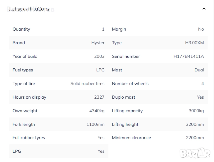 Газов мотокар Hyster H3.00XM, 2003 г., снимка 1 - Индустриална техника - 52254161 Газов мотокар Hyster H3.00XM, 2003 г., снимка 2 - Индустриална техника - 52254161 Газов мотокар Hyster H3.00XM, 2003 г., снимка 3 - Индустриална техника - 52254161 Газов мотокар Hyster H3.00XM, 2003 г., снимка 4 - Индустриална техника - 52254161 Газов мотокар Hyster H3.00XM, 2003 г., снимка 5 - Индустриална техника - 52254161 Газов мотокар Hyster H3.00XM, 2003 г., снимка 6 - Индустриална техника - 52254161 Газов мотокар Hyster H3.00XM, 2003 г., снимка 7 - Индустриална техника - 52254161 Газов мотокар Hyster H3.00XM, 2003 г., снимка 8 - Индустриална техника - 52254161 Газов мотокар Hyster H3.00XM, 2003 г., снимка 9 - Индустриална техника - 52254161 Газов мотокар Hyster H3.00XM, 2003 г., снимка 10 - Индустриална техника - 52254161 Газов мотокар Hyster H3.00XM, 2003 г., снимка 11 - Индустриална техника - 52254161 Газов мотокар Hyster H3.00XM, 2003 г., снимка 12 - Индустриална техника - 52254161 1/12