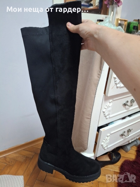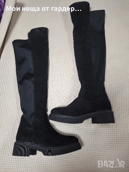 Ботуши не ползвани. само тествани. Високи стилни чизми комбинация от велур и еластична материя има и цип.удобни р37. от 90лв