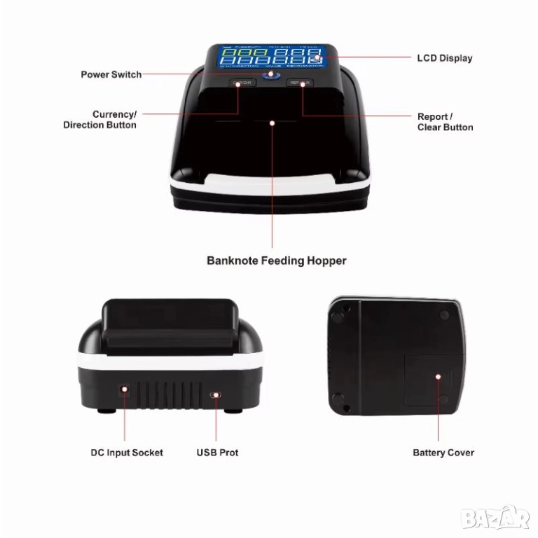 детектор на фалшиви банкноти, предназначен за обекти с висока динамика на работа с пари в брой — магазини, аптеки, офиси, касови гишета, заведения, търговски центрове и др.