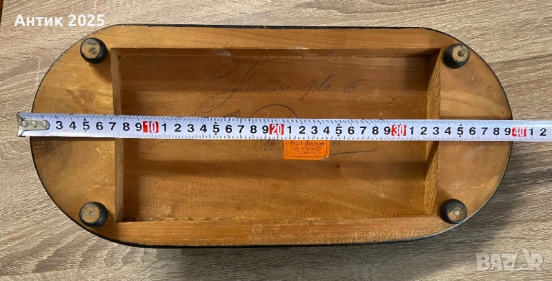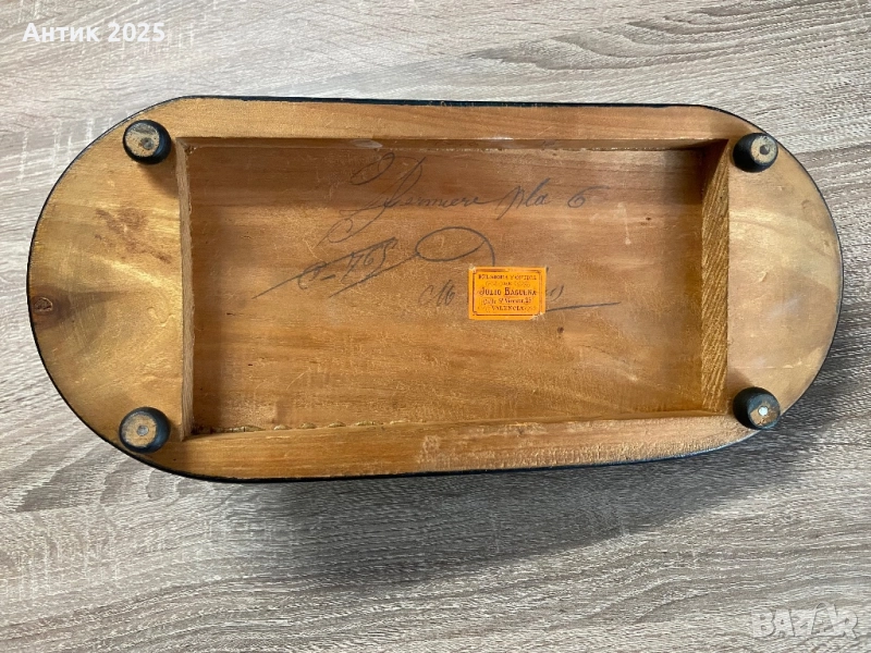 На долната страна на основата е запазен оригинален етикет от испанския магазин „Relojería y Óptica Julio Baquera, Valencia“, както и ръкописен номер на модела – доказателство за автентичност и рядкост на изделието.