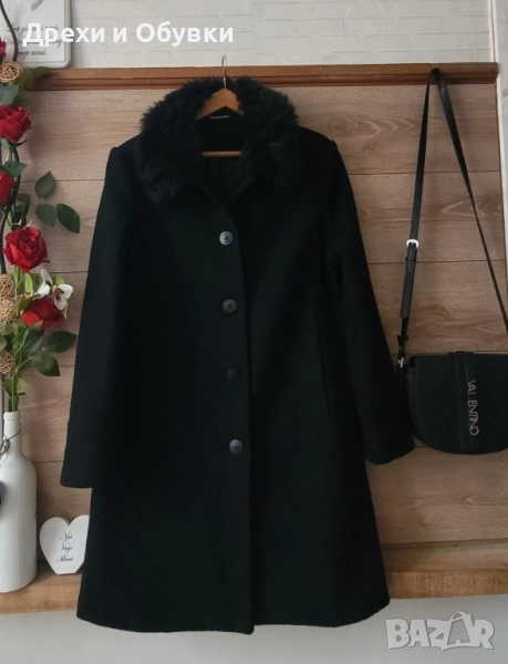 Черно палто с пухена яка → Обява 52255853