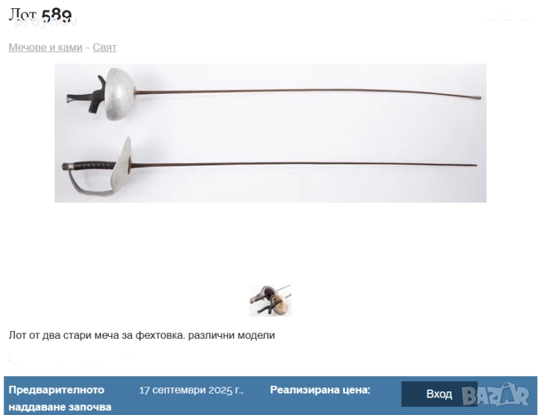 стари рапири във видимо много добро състояние за годините си и боят който са