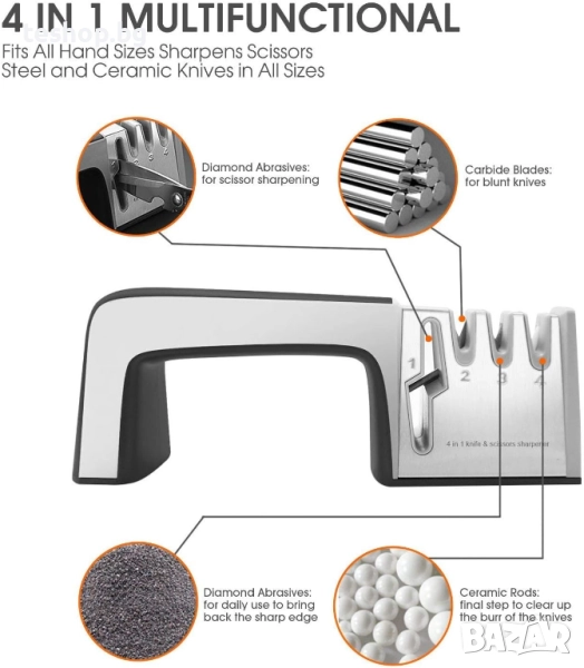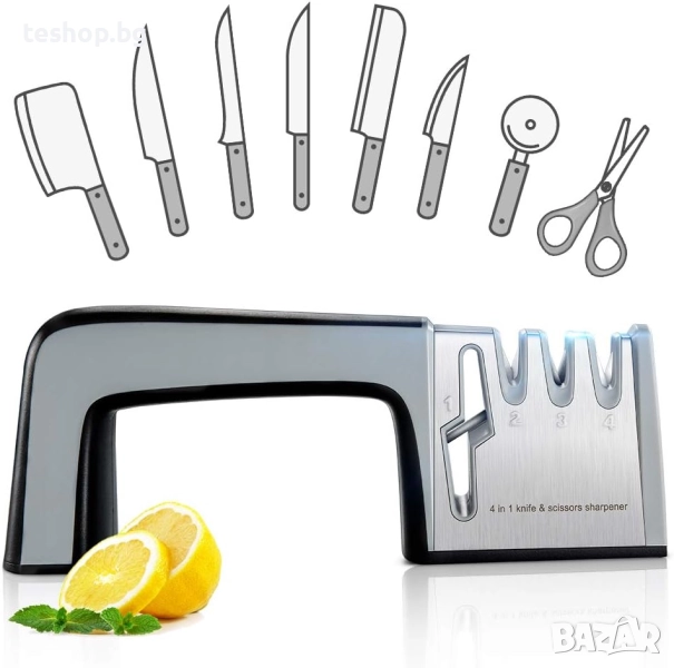 Многофункционален инструмент за заточване на кухненски ножове 4-в-1