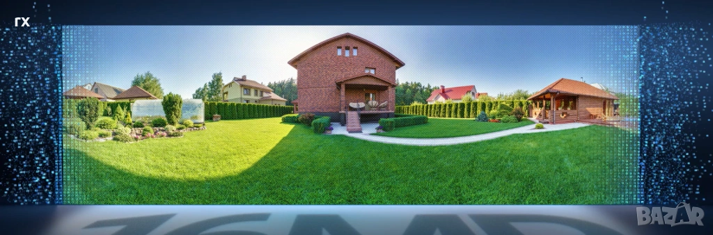 👁️🗨️ Панорамен 180° Изглед: Двата обектива се сливат в едно широко, цялостно и неизопачено изображение, покриващо огромна площ без пропуски.