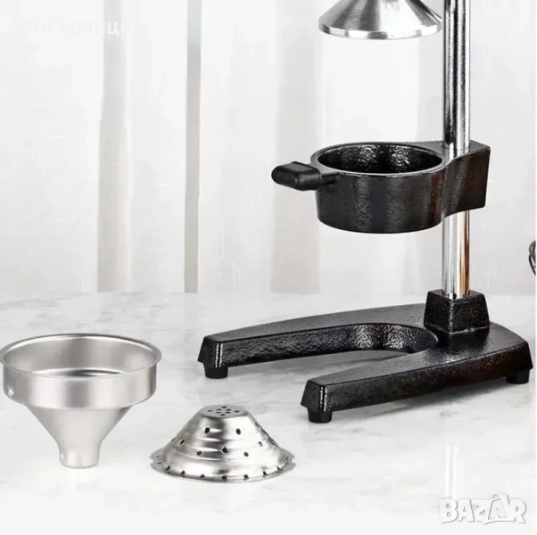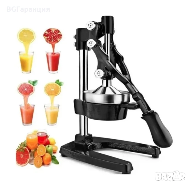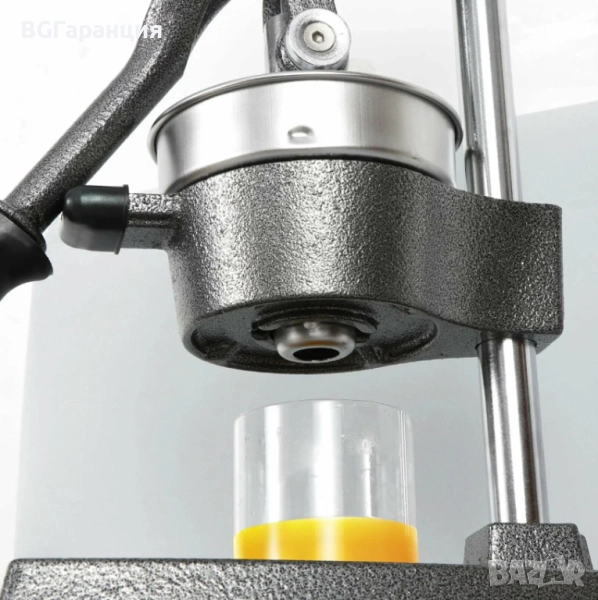Това е професионална ръчна цитрус преса, изработена от здрав чугун и неръждаема стомана, предназначена за ефективно изстискване на портокали, лимони, лайм, грейпфрути и други цитрусови плодове.