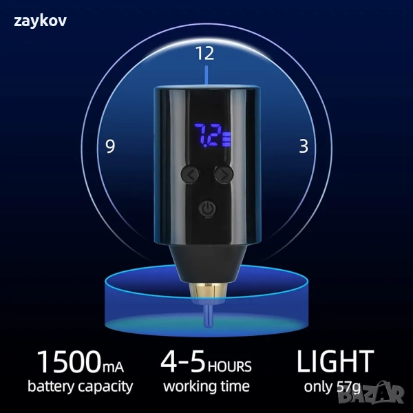 Акрилен материал, тегло: 55 грама, лек и лесен за употреба. Литиева батерия 1500 mAh, зареждането отнема около 2 часа и може да работи непрекъснато повече от 5 часа. 2. Контролерът с бутони Type-C (ръчният контролер за превключване е подобен на функцията на педала) може да управлява превключвателя за захранване по всяко време по време на работа. 3. Натиснете продължително, за да включите или изключите захранването, и натиснете кратко, за да поставите на пауза или да започнете работа. Натиснете клавиша, за да регулирате лесно напрежението, като при всяко натискане напрежението е ±0,1 V. Натиснете продължително, за да увеличите или намалите бързо напрежението. 4. Дизайнът на квадратната колонна структура избягва търкаляне по време на останалата част от татуировката и няма да причини лош контакт поради разхлабване при движение по време на употреба. 5. Цифров LED дисплей: захранването е оборудвано с LED дисплей. Напрежението може да се показва точно в реално време.