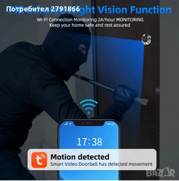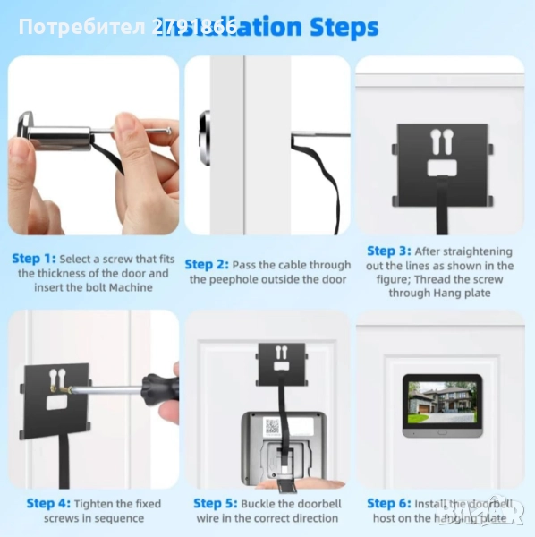 - 【С 32GB MicroSD】- Включва 32G TF карта за локално записване или събитие. За съхранение в облак е необходим абонамент! 32GB TF карта за 90 дни запис. Дебелина на вратата: 35-115 мм, диаметър на чучура: 15-36 мм (Моля, измерете дебелината на вратата преди покупка)! Поддържа само 2.4GHz WiFi. !