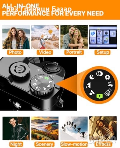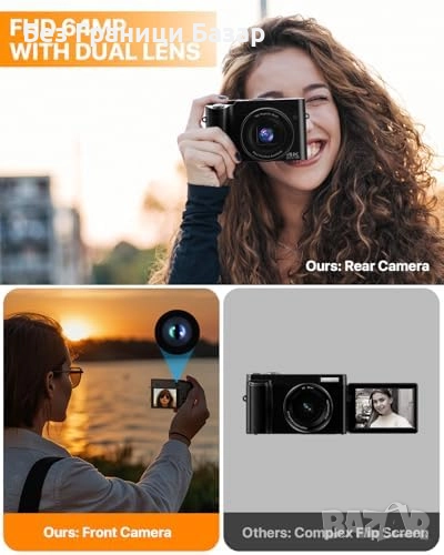 Нова Влог камера 4K 64MP с автофокус, светкавица и 2 батерии Фотоапарат
