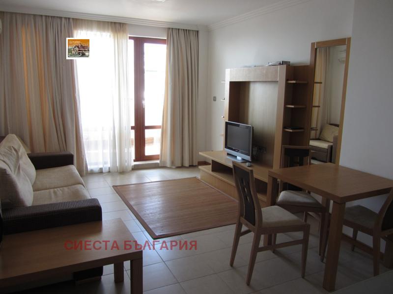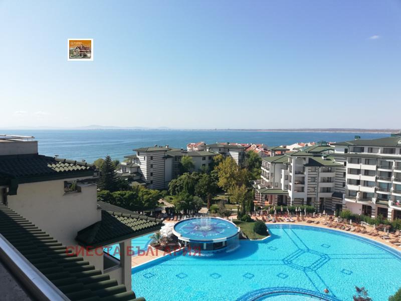 Напълно обзаведен двустаен апартамент в луксозния комплекс Емералд. Комплексът е разположен в централната част на Равда, на първа линия от морския бряг до централния плаж на Равда. Апартаментът се намира седми жилищен етаж,корпус Сатен и е с квадратура 73 кв.м. Разпределение: спалня, просторна дневна с кухненски бокс, баня с вана и тоалетна, просторна тераса с прекрасна панорама към морето и басейните. Апартаментът е стилно обзаведен и напълно оборудван. Комплексът предлага лукс, комфорт, уют и удобство разположен на първа линия, с просторна красиво озеленена територия от 40000 кв.м., с разположени в нея пет отделни сгради, три открити и един закрит басейн, два ресторанта и три бара, тенис корт, спортна площадка, кътове за почивка и отдих, детски площадки, фитнес, СПА - център с голям отопляем вътрешен басейн, подземен и надземен паркинг, целогодишно работеща рецепция басейн с детска секция, целогодишна охрана и поддръжка, разнообразни магазини. Комплексът се намира в централната част на курортното селище, в близост до главната търговска улица, разнообразни магазини и заведения за хранене и развлечения, аптека, банки, автобусна спирка.