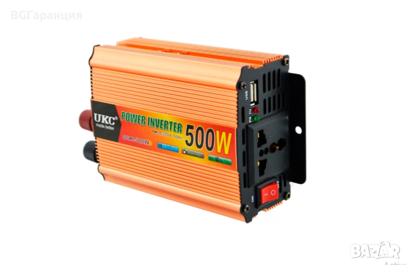 Инверторът UKC Power Inverter 500W е компактно и ефективно устройство, което преобразува постоянен ток (DC) от 12V (обикновено от автомобилен акумулатор) в променлив ток (AC) 220V, подходящ за захранване на битови електроуреди. Идеален е за използване в автомобили, каравани, къмпинги или при аварийни ситуации. С него може да захранвате лаптопи, зарядни устройства, осветление, вентилатори и други маломощни електроуреди.