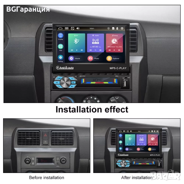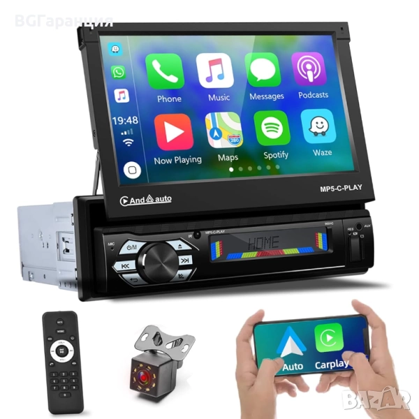 Този автомобилен мултимедиен плеър MP5-C-PLAY комбинира модерна функционалност и практичен дизайн, идеален за подобряване на развлекателната система във вашия автомобил. Със 7-инчов изскачащ сензорен екран, Bluetooth свързаност, FM радио и възможност за възпроизвеждане на музика и видео, устройството предлага цялостно мултимедийно изживяване.