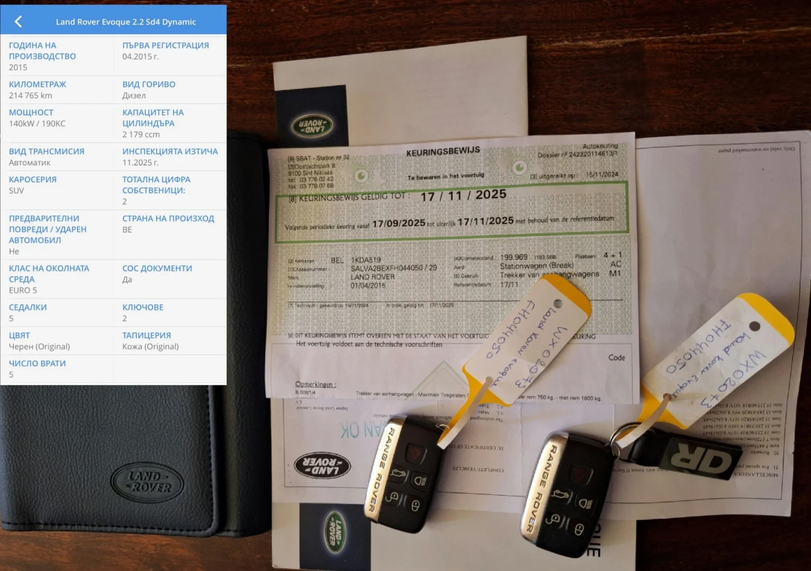 Автокъща РУД КОМЕРС предлага НАЛИЧЕН АВТОМОБИЛ: LAND ROVER Evoque *DYNAMIC* - Нов внос БЕЛГИЯ - РЕАЛЕН ПРОБЕГ и ПЕРФЕКТНО СЪСТОЯНИЕ - ПОСЛЕДЕН ТЕХНИЧЕСКИ ПРЕГЛЕД В БЕЛГИЯ 15. 11. 2024г на 199 969 к. м. - НАЛИЧНИ СНИМКИ ОТ ЗАКУПУВАНЕТО - НОВИ ЗИМНИ ГУМИ ДОТ 2025 г. + КОМПЛЕКТ ЛЕТНИ ГУМИ *GENERAL* ОБОРУДВАНЕ: НАЙ-ВИСОКО НИВО - *DYNAMIC* 4x4 * 190 к. с. ВСИЧКИ ЕКСТРИ - БЕЗКЛЮЧОВО ЗАПАЛВАНЕ - ПОДГРЯВАНЕ НА ПРЕДНИ СЕДАЛКИ - ОБДУХВАНЕ НА ПРЕДНИ СЕДАЛКИ - ПАМЕТ НА ПРЕДНИТЕ СЕДАЛКИ - ПОДГРЯВАНЕ НА ЗАДНИТЕ СЕДАЛКИ - ПОДГРЯВАНЕ НА ВОЛАНА - ПАНОРАМЕН ТАВАН - КАМЕРА ЗА ЗАДЕН ХОД - ПРЕДЕН И ЗАДЕН ПАРКТРОНИК - АВТОПИЛОТ - ЕЛЕКТРИЧЕСКИ БАГАЖНИК - ОЗВУЧИТЕЛНА СИСТЕМА *MERIDIAN * - СЕНЗОРИ ЗА МЪРТВА ЗОНА В ОГЛЕДАЛАТА - СВЕТЕЩО ЛОГО НА ПРАГОВЕТЕ - F1- СКОРОСТИ НА ВОЛАНА - 9 СТЕПЕННА ZF АВТОМАТИЧНА СКОРОСТНА КУТИЯ С ВЪЗМОЖНОСТ ЗА СПОРТЕН РЕЖИМ НА ШОФИРАНЕ - LED ДНЕВНИ СВЕТЛИНИ - БИКСЕНОНОВИ ФАРОВЕ - ВЪЗМОЖНОСТ ЗА 4 РЕЖИМА НА ШОФИРАНЕ - БЛОКАЖ НА ЦЕНТРАЛНИЯ ДИФЕРЕНЦИАЛ - АСИСТЕНТ ЗА СПУСКАНЕ ПО НАКЛОН - РЕЗЕРВНА ГУМА - 3x12V/ USB/AUX - 2 ОРИГИНАЛНИ КЛЮЧА ЗА НАС: САМО ПОДБРАНИ АВТОМОБИЛИ С ДОКАЗАН ПРОИЗХОД И В ПЕРФЕКТНО СЪСТОЯНИЕ СЪДЕЙСТВИЕ В КАТ ВЪЗМОЖЕН ПРЕГЛЕД В СЕРВИЗ