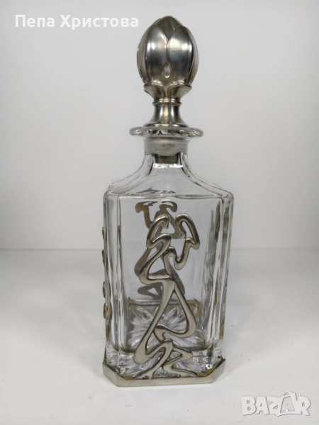 Гарафа за yиски от белгийски оловен кристал с калаен обков в стил "Ар Нуво" - Etains Potstainiers Hutois.