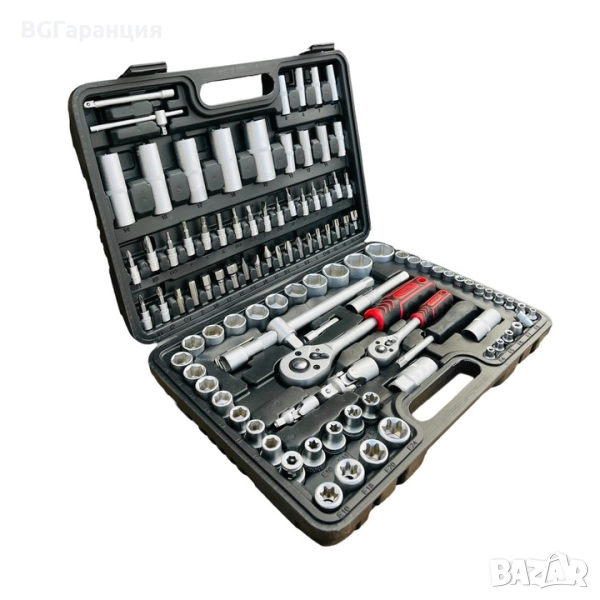 Адаптери за различни размери и други аксесоари като подвижни свръзки за ъглово движение завършват комплекта, което го прави изключително универсален и практичен. Комплектът е изработен с внимание към детайла, за да осигури максимална издръжливост и ефективност при всякакви ремонти и монтажни дейности.