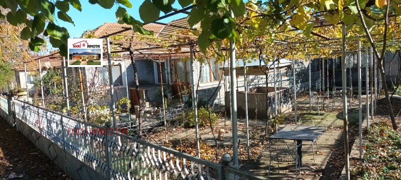 Предлага се двуетажна къща с допълнителни постройки , гараж и голяма маза. Има две отделни къщи с временна топла връзка, едноетажната е с вход с антре, дълъг коридор с вход към двуетажната къща водещ към дтая с кухня,килер, стълби към втория етаж с тераса и две стаи. Голям поддържан двор с беседка и декоративен басейн.А5903