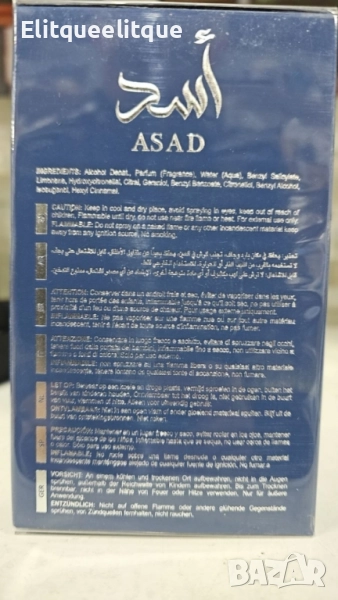 Тип продукт : Арабски парфюм; Lattafa Asad Zanzibar е ориенталски парфюм, който предлага богат и екзотичен аромат, подходящ както за мъже, така и за жени. Той е идеален за вечерни поводи и събития през по-студените месеци. Основни характеристики: Ароматни нотки: Връхни: цитрусови плодове, пикантни подправки; Сърдечни: канела, кожа, дървесни акорди; Базови: амбра, ванилия, мускус; Тип: Ориенталски, пикантен; Дълготрайност: Висока, оставя силен и траен шлейф; Флакон: Елегантен и луксозен, с тъмни и златисти детайли, които отразяват изтънченост и мощ.