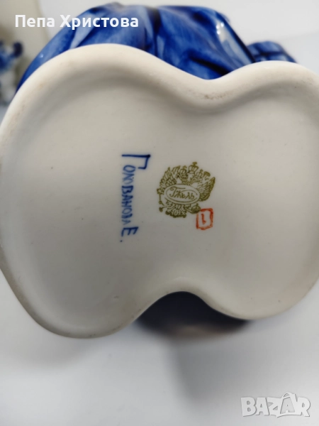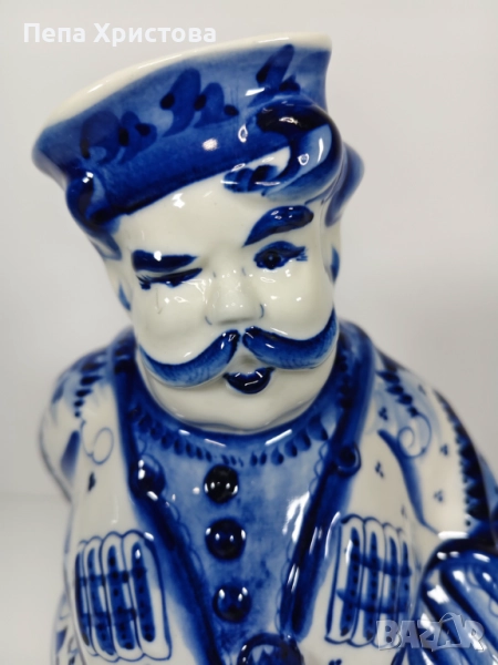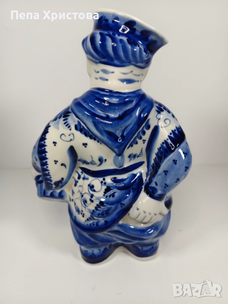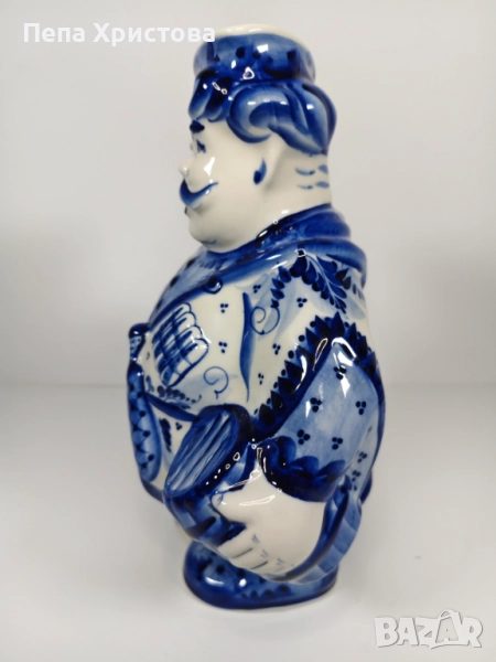 Поставка за готварски лъжици от гжелски порцелан с атрактивната форма на казак. Разбира се, ръчна изработка и ръчно подглазурно кобалтово изрисуване - Гжел.
