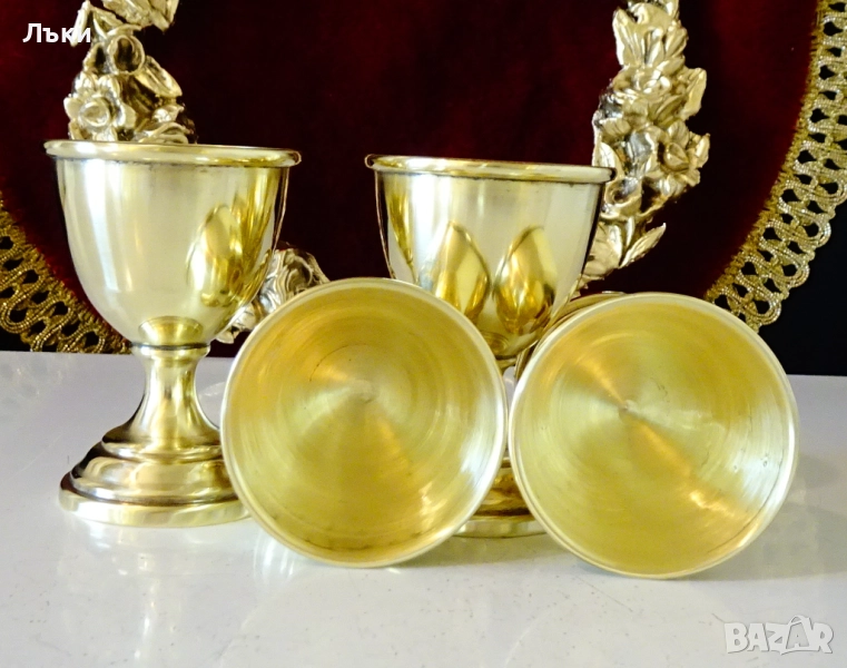 Стари чаши за ракия,ликьор,повдигнати на столче,майсторска