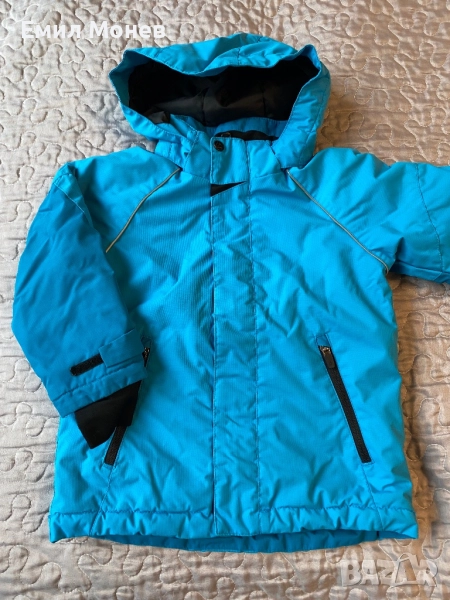 Детска зимна шуба, яке H&M. Размер 98 см. 2-3 год., но според мен става и за по-голямо защото моето дете го носи до като беше 4 годишен. Цвят: светло синьо Цена: 30 лв. Отвън е промазан водоустойчив, непромокаем шушлеков плат. Отвътре е вата с полар. Качулката може да се маха.