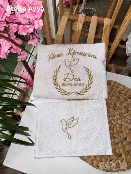 Хавлии с бродерия – за кръщене, градина, подарък, рожден ден и други поводи → Обява 52259057