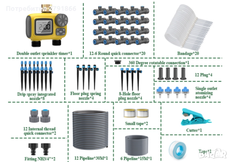 Нов комплект за капково с двупортов таймер 2025 г. с три независими програми с 3 вида капкови дюзи