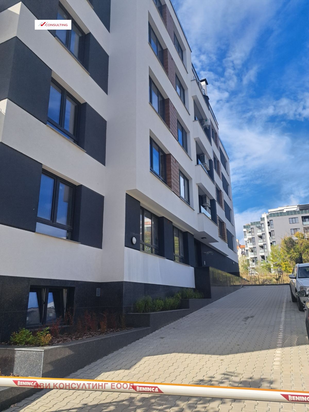 Общи части: гранит, миещ се латекс, алуминиеви парапети, осветление на фотоклетка, 2 безшумни асансьора.