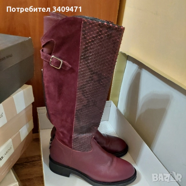 Ботуши от естествена кожа в цвят бордо → Обява 52259237