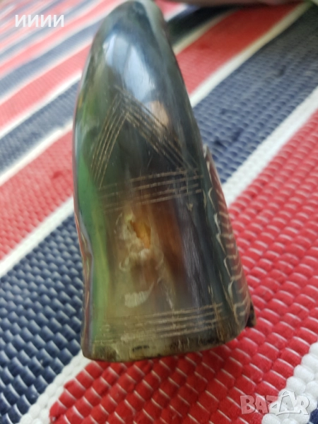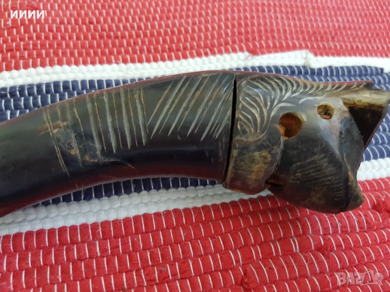 Който разбира знае от коя държава е. От началото на 20-ти век, дръжка от биволски рог, оформена като глава на лъв. Без луфт или други забележки. Обща дължина без канията 55 см.