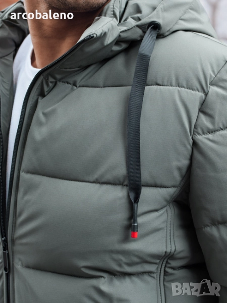 Този модел стои добре и допълва разнообразни стилове, от ежедневни до спортни. Той е отличен избор за зимата, осигуряващ комфорт, защита от атмосферни влияния и модерен външен вид. Минималистичният дизайн е допълнен от детайли като широки връзки на качулката, които придават характер на якето.