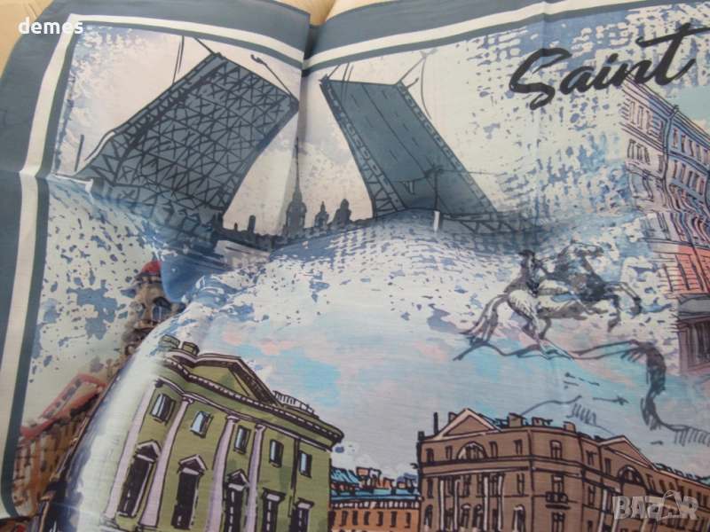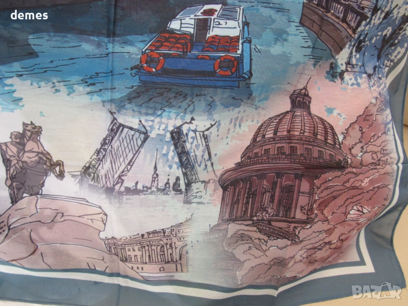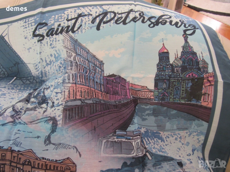 Красив дизайнерски принт-забележителностите на Петербург, с акцент върху Нева.
