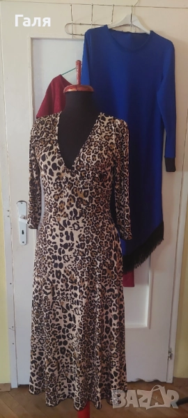 Рокля к тигров принт, рокля с ресни кралско синьо и червена рокля размер М.