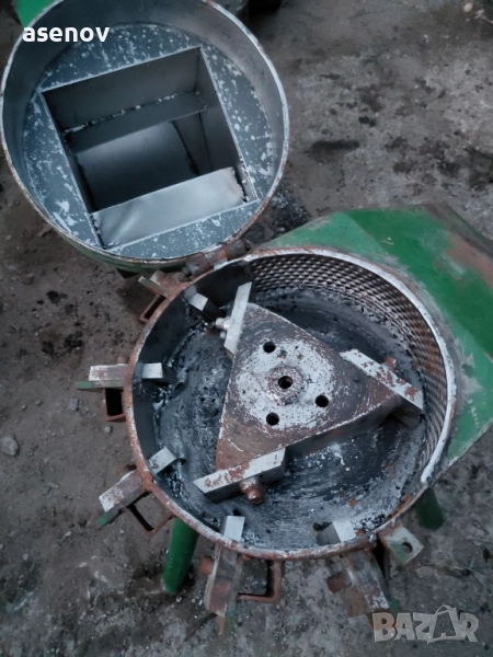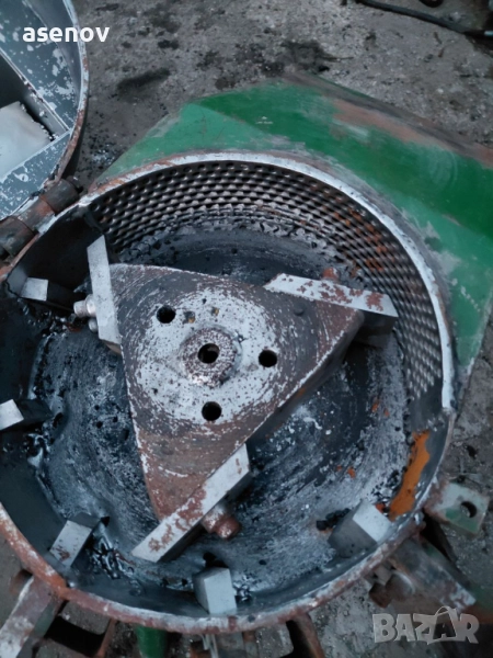 продавам мелница за пластмаса, роторна с 3 въртящи ножа и 5 стационарни решетки с Ф 8 мм; диаметър на барабан 40 см, работи с електродвигател с мощност 7,5 кв, диаметър на ос 38 мм;